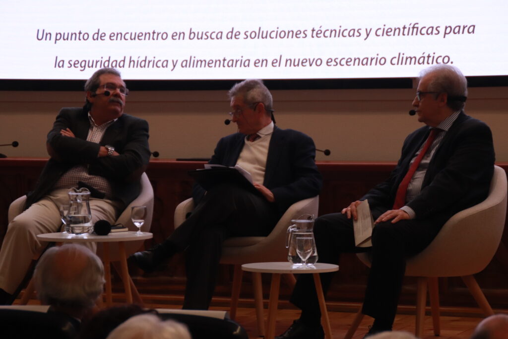 En la mesa redonda sobre política hidráulica, en la que participaron los ingenieros de caminos Francisco Javier Flores Montoya, Joaquín Díez -Cascón y Tomás Sancho Marco, la principal conclusión fue que España dispone de recursos naturales y humanos para conseguir la autonomía energética hidráulica y alimentaria y para ser la huerta de Europa. Pero para ello son necesarias políticas nacionales de consenso y no de confrontación entre territorios, que deberían plasmarse en un pacto nacional del agua que atienda a la solidaridad hídrica y que dé soluciones a los problemas en lugar de avivarlos.